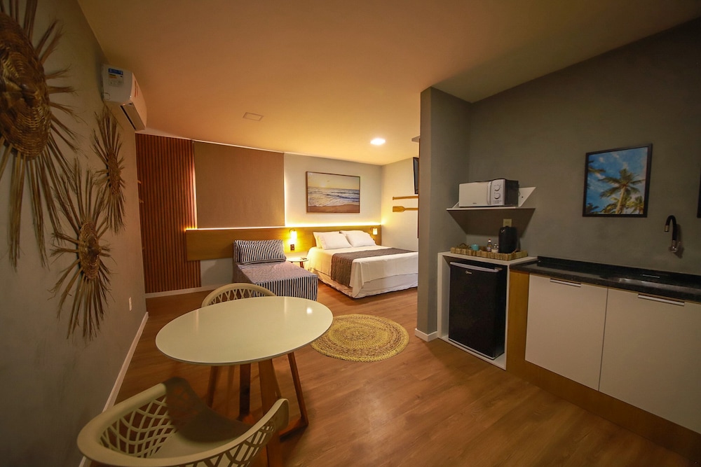 Ponta do Manguen ranta ja Peroban ranta sijaitsevat 5 minuutin ajomatkan päässä majoituspaikasta. Tämä huoneisto sijaitsee 5,1 km:n päässä kohteesta Barra Granden ranta ja 5,5 km:n päässä kohteesta Coroa Granden ranta. Tässä majoituspaikassa on 6 viihtyisää ja ilmastoitua huonetta. Huoneiden varusteluun kuuluu muun muassa keittonurkkaus, jossa on mikroaaltouuni ja espressokoneet. Jokaisessa huoneessa on patio. Mukavuuksiin kuuluu taulutelevisio ja satelliittikanavat. Käytössäsi on myös ilmainen langaton internetyhteys. Etäisyydet pyöristetään lähimpään 0,1 mailiin ja kilometriin.