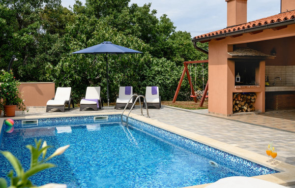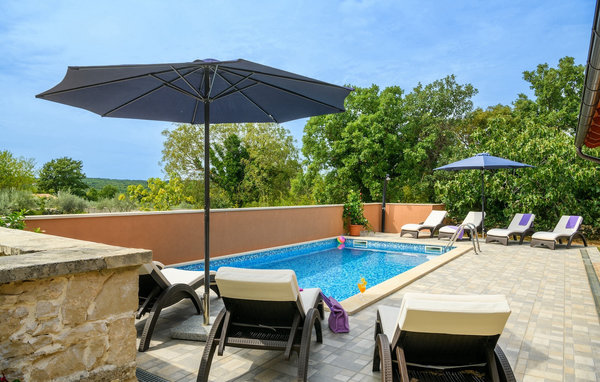 The beautiful Villa Percan is the ideal choice for families or groups of friends who want to relax in beautiful surroundings just 3 km from the Adriatic Sea. You can also relax on the comfortable sun loungers by the private pool. On the terrace, there is an outdoor dining area with a charcoal barbecue where you can prepare delicious meals or enjoy a glass of your favorite drink. There are various activities for the children: swings, a trampoline and a futsal court. The first floor consists of a lovingly furnished living room, a fully equipped kitchen and a spacious dining room. The four bedrooms (all air-conditioned) and the three bathrooms are located on the upper floor.