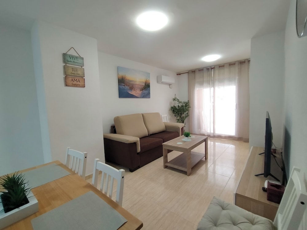 Huoneisto sijaitsee rannalla, ja Polinesian vesipuisto ja Les Amplariesin ranta sijaitsevat 5 minuutin kävelymatkan päässä. Tämä rannalla sijaitseva huoneisto sijaitsee 1,7 km:n päässä kohteesta Torre de la Salin ranta ja 2,7 km:n päässä kohteesta Marina d'Or. Tämä yksilöllisesti sisustettu huoneisto tarjoaa käyttöösi keittiön, jossa on täysikokoinen jääkaappipakastin ja uuni. Huoneessa on kalustettu parveke. Ilmainen langaton internetyhteys pitää sinut yhteydessä ja taulutelevisio tarjoaa viihdykettä. Omassa kylpyhuoneessa on erillinen kylpyamme ja suihku, syvä kylpyamme ja bidee. Etäisyydet pyöristetään lähimpään 0,1 mailiin ja kilometriin.