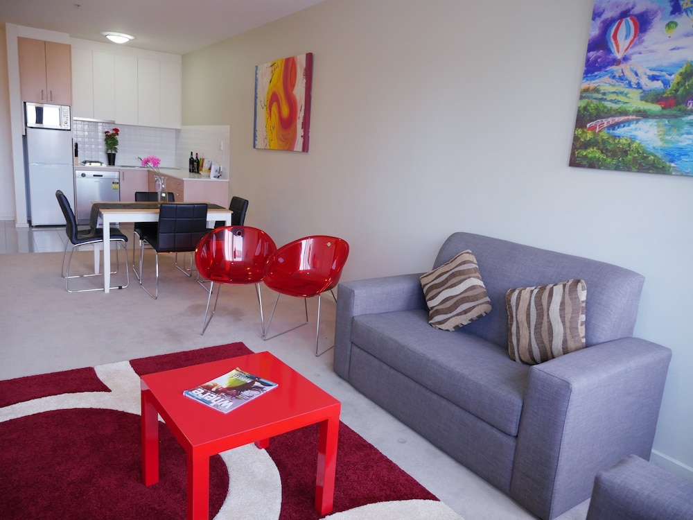 Anchor on Elizabeth sijaitsee keskustassa, joten Melbourne Central löytyy kivenheiton päästä ja Bourke Street Mall puolestaan vain 4 minuutin kävelymatkan päästä. Tämä huoneisto sijaitsee 0,5 km:n päässä kohteesta Collins Street ja 0,9 km:n päässä kohteesta Queen Victoria Market (tori). Tässä majoituspaikassa on 3 viihtyisää ja ilmastoitua huonetta. Huoneiden varusteluun kuuluu muun muassa keittiö, jossa on täysikokoinen jääkaappipakastin ja liesi. Mukavuuksiin kuuluu 40-tuumainen taulutelevisio ja kaapelikanavat. Käytössäsi on myös ilmainen langaton internetyhteys. Huoneissa on oleskelualue ja mikroaaltouuni. Etäisyydet pyöristetään lähimpään 0,1 mailiin ja kilometriin.