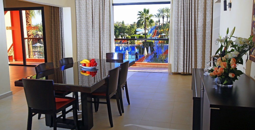 Labranda Targa Club Aqua Parc sijaitsee keskustassa, ja Marrakech Plaza ja Majorellen puutarha 10 minuutin ajomatkan päässä. Tämä kylpylälomalle soveltuva hotelli sijaitsee 9,4 km:n päässä kohteesta Jemaa el-Fnaa ja 8,5 km:n päässä kohteesta Menara Mall -ostoskeskus. Kaikissa 245 huoneessa on ilmastointi ja minibaari. Satelliittikanavat tarjoavat viihdykettä jokaiselle. Huoneissa on oma kylpyhuone, ja sen varusteluun kuuluu ilmaiset hygieniatuotteet ja hiustenkuivaaja. Huone siivotaan päivittäin. Huoneissa on tallelokero ja pimennysverhot. Etäisyydet pyöristetään lähimpään 0,1 mailiin ja kilometriin.
