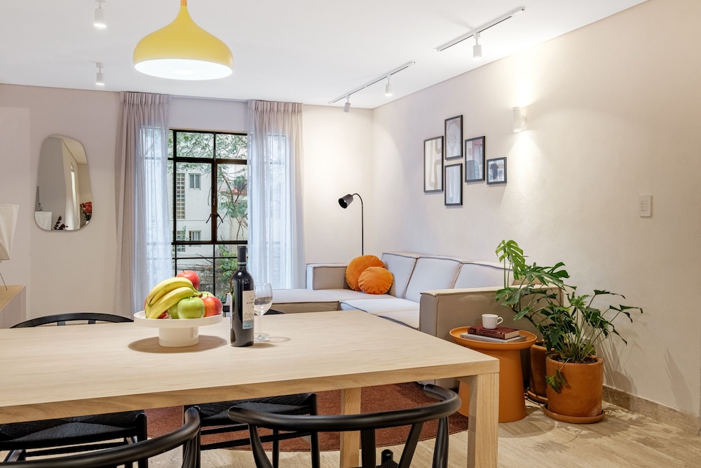 Itsenäisyyden enkelin monumentti ja World Trade Center Ciudad de México sijaitsevat 5 minuutin ajomatkan päässä. Tämä huoneisto sijaitsee 3,2 km:n päässä kohteesta Paseo de la Reforman katu ja 6,5 km:n päässä kohteesta Zócalo. Tässä majoituspaikassa on 4 yksilöllisesti sisustettua huonetta. Huoneiden varusteluun kuuluu muun muassa keittiö, jossa on täysikokoinen jääkaappipakastin ja liesi. Mukavuuksiin kuuluu 40-tuumainen älytelevisio ja kaapelikanavat. Käytössäsi on myös ilmainen langaton internetyhteys. Huone siivotaan kerran viikossa. Huoneissa on tallelokero ja oleskelualue. Etäisyydet pyöristetään lähimpään 0,1 mailiin ja kilometriin.