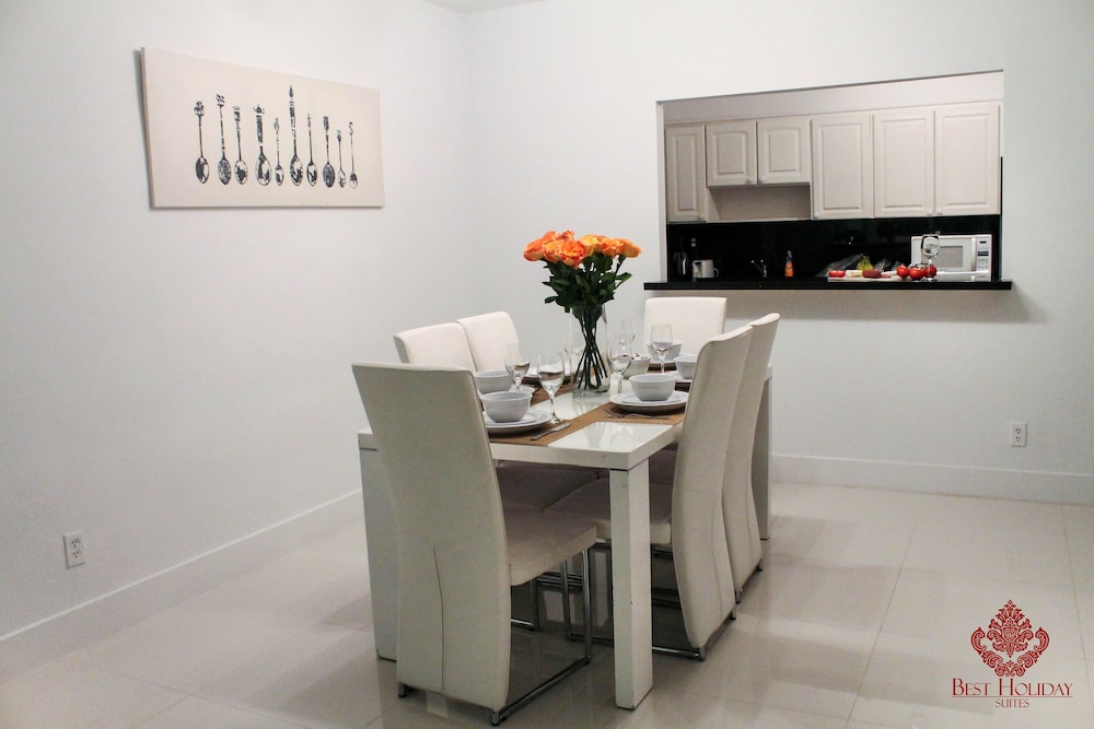Sunny Isles Suites sijaitsee lähellä rantaa, ja Aventura Mall ja Sunny Isles Beach Beach 5 minuutin ajomatkan päässä. Tämä hotelli sijaitsee 3,8 km:n päässä kohteesta Hollywood Beach ja 14 km:n päässä kohteesta Hard Rock Stadium. Tässä majoituspaikassa on 5 viihtyisää ja ilmastoitua huonetta. Huoneiden varusteluun kuuluu muun muassa keittiö, jossa on jääkaappi ja mikroaaltouuni. Jokaisessa huoneessa on parveke tai terassi. Ilmainen langaton internetyhteys pitää sinut yhteydessä verkkoon. Huone siivotaan kerran yöpymisen aikana. Huoneissa on oleskelualue ja kahvin-/vedenkeitin. Etäisyydet pyöristetään lähimpään 0,1 mailiin ja kilometriin.