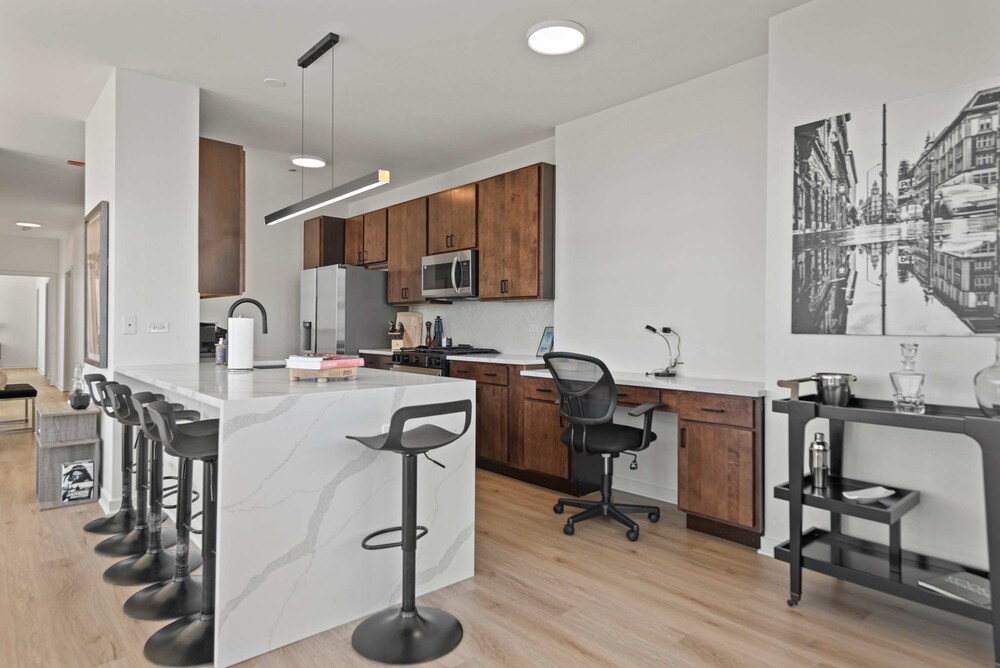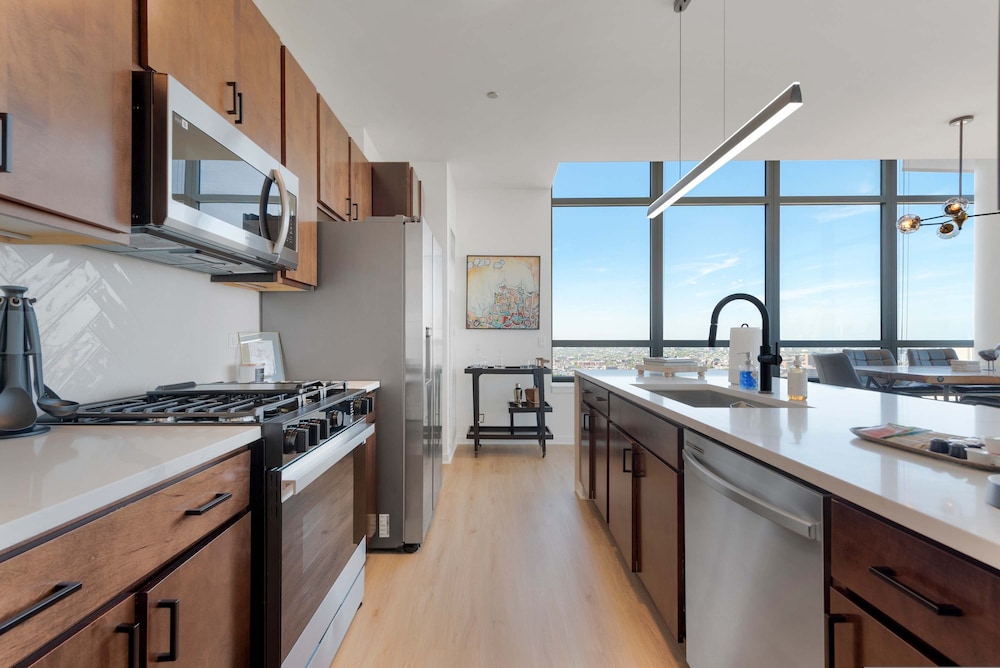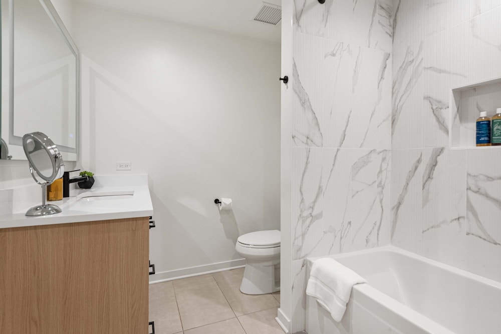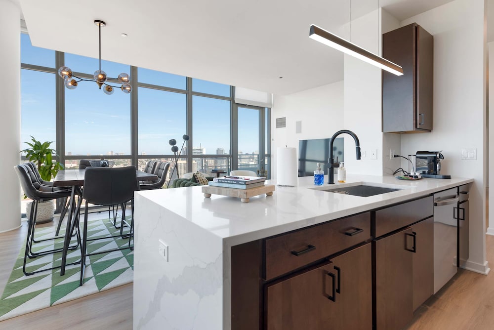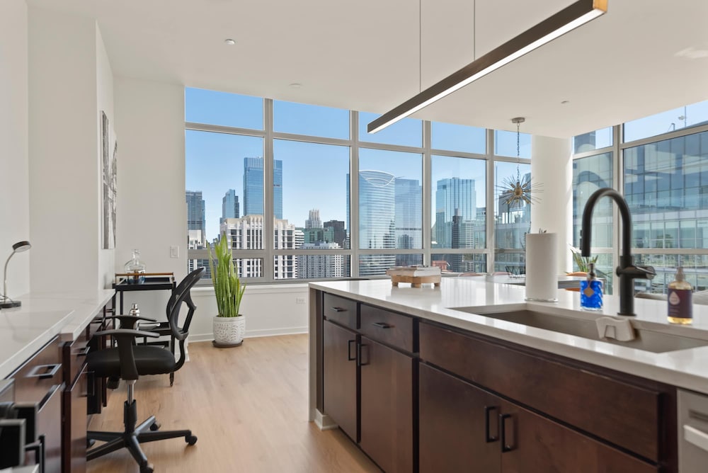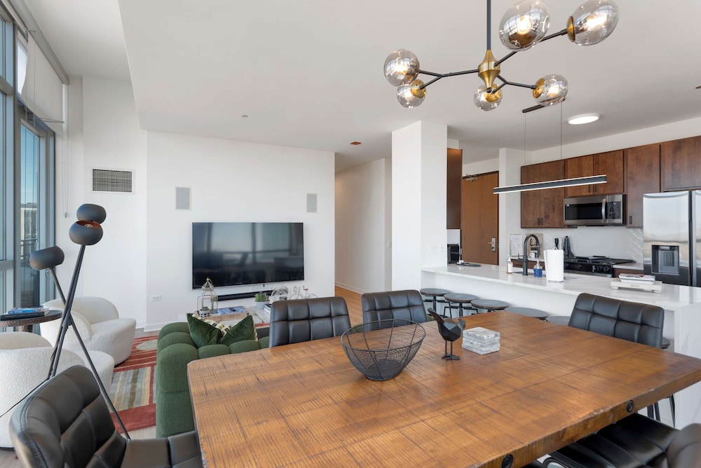 Chicago Riverwalk ja Michigan Avenue sijaitsevat 5 minuutin ajomatkan päässä. Tämä huoneisto sijaitsee 2,7 km:n päässä kohteesta Millennium Park ja 2,9 km:n päässä kohteesta United Center -urheilukeskus. Tee olosi kotoisaksi huoneistossasi. Etäisyydet pyöristetään lähimpään 0,1 mailiin ja kilometriin.
