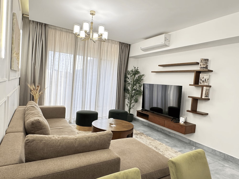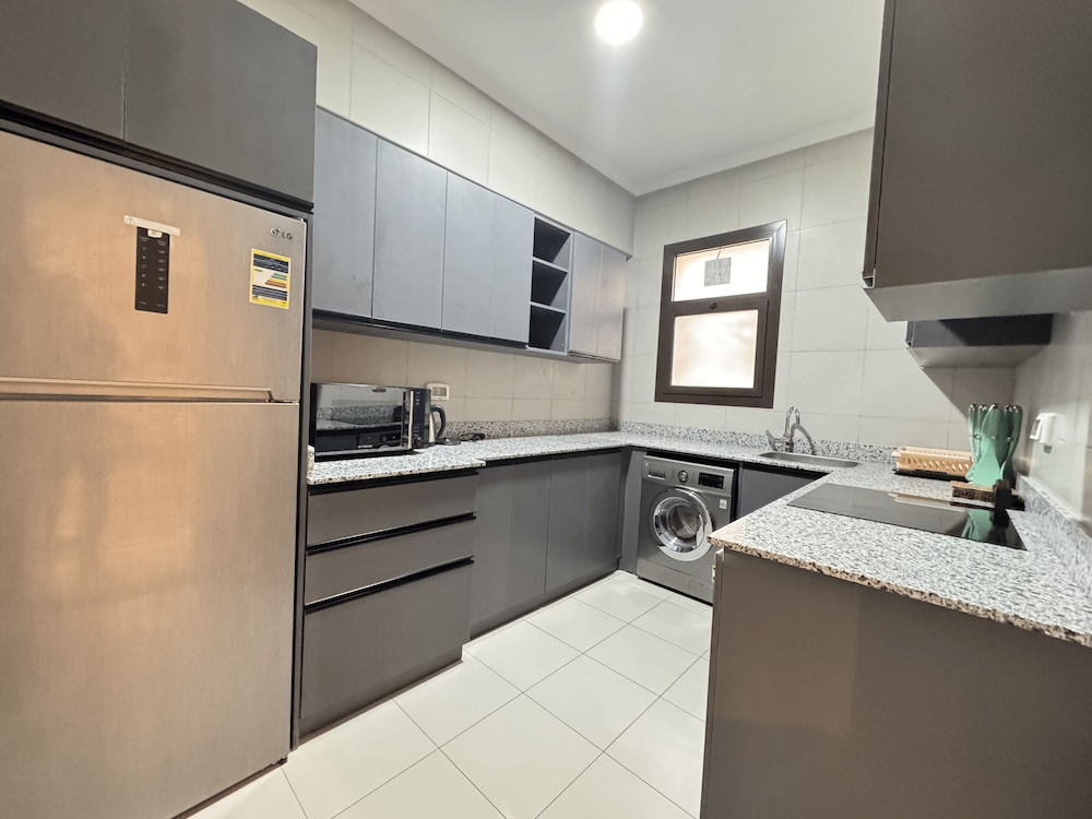 Katameyan keskusta ja Kairon Festival City -ostoskeskus sijaitsevat 5 minuutin kävelymatkan päässä majoituspaikasta. Tämä huoneistohotelli sijaitsee 19,2 km:n päässä kohteesta Khan el-Khalili (basaari) ja 22,4 km:n päässä kohteesta Tahririn aukio. Tämä ilmastoitu huoneisto tarjoaa käyttöösi keittiö, jossa on täysikokoinen jääkaappipakastin ja uuni. Ilmainen langaton internetyhteys pitää sinut yhteydessä. Mukavuuksiin kuuluu mikroaaltouuni, pyykinpesukone ja siivouspalvelu pyynnöstä. Etäisyydet pyöristetään lähimpään 0,1 mailiin ja kilometriin.