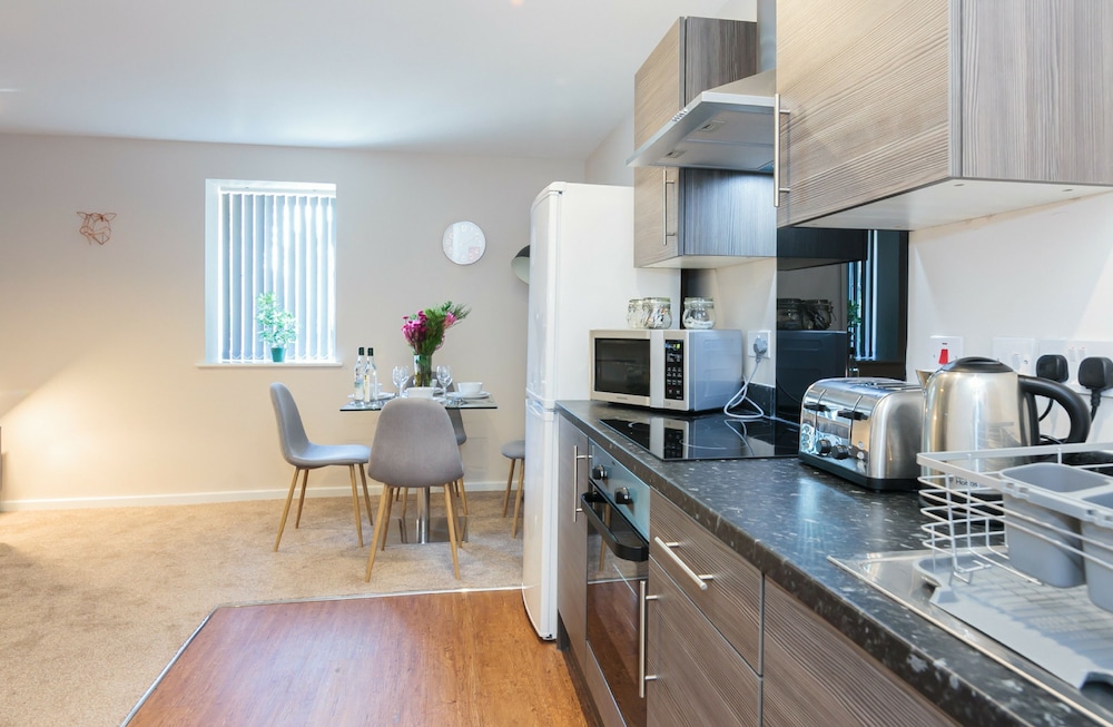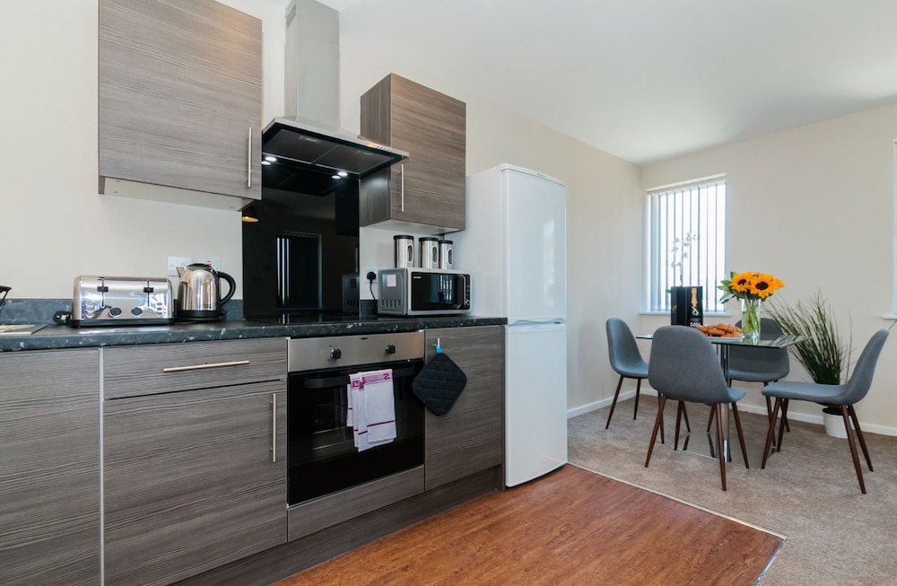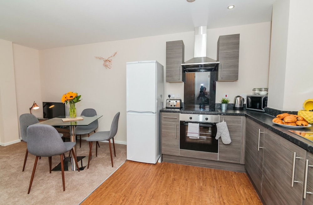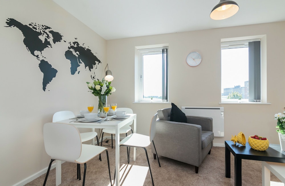 Old Trafford ja Salford Quays sijaitsevat 5 minuutin ajomatkan päässä. Tämä huoneisto sijaitsee 6,2 km:n päässä kohteesta Trafford Centre ja 23 km:n päässä kohteesta Peak District National Park. Tässä majoituspaikassa on 24 yksilöllisesti sisustettua huonetta. Huoneiden varusteluun kuuluu muun muassa keittiö, jossa on jääkaappi ja uuni. Mukavuuksiin kuuluu myös taulutelevisio. Huone siivotaan kerran viikossa. Huoneissa on vedenkeitin ja silitysrauta/-lauta. Etäisyydet pyöristetään lähimpään 0,1 mailiin ja kilometriin.