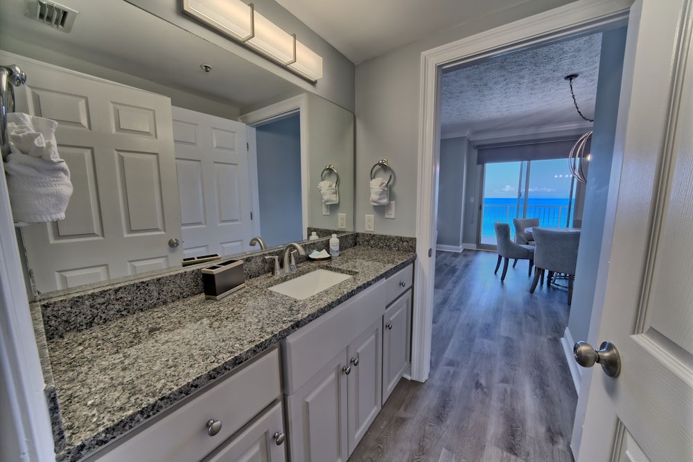 Huoneisto sijaitsee rannalla, minkä lisäksi Panama City Beaches ja Thomas Drive sijaitsevat muutaman askeleen päässä majoituspaikasta. Tämä golfin pelaamiseen soveltuva huoneisto sijaitsee 10,3 km:n päässä kohteesta Pier Park ja 4,8 km:n päässä kohteesta Shipwreck Island Waterpark. Tämä ilmastoitu huoneisto tarjoaa käyttöösi keittiö, jossa on jääkaappi ja uuni. Huoneessa on parveke tai terassi. Ilmainen langaton internetyhteys pitää sinut yhteydessä, ja kaapelikanavat viihdyttävät yöpymisen aikana. Mukavuuksiin kuuluu mikroaaltouuni ja kahvin-/vedenkeitin. Etäisyydet pyöristetään lähimpään 0,1 mailiin ja kilometriin.
