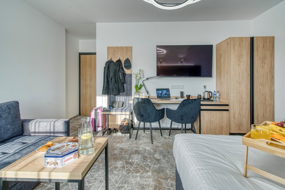 Acodomo Apartamenty Poddębice sijaitsee 22,2 km kohteesta Białowieżan kansallispuisto ja 24,7 km kohteesta Aleksandrow Lodzkin kaupungintalo. Tämä huoneistohotelli sijaitsee 24,7 km:n päässä kohteesta Kosciuszki Square ja 24,8 km:n päässä kohteesta Pyhän Rafaelin kirkko. Kaikkien 20 huoneen mukavuuksiin kuuluu ilmastointi. Varusteluun kuuluu Select Comfort -patjallinen sänky. Ilmainen langaton internetyhteys pitää sinut yhteydessä verkkoon. Käytössäsi on kylpyhuone, josta löytyy suihku ja hiustenkuivaaja. Etäisyydet pyöristetään lähimpään 0,1 mailiin ja kilometriin.