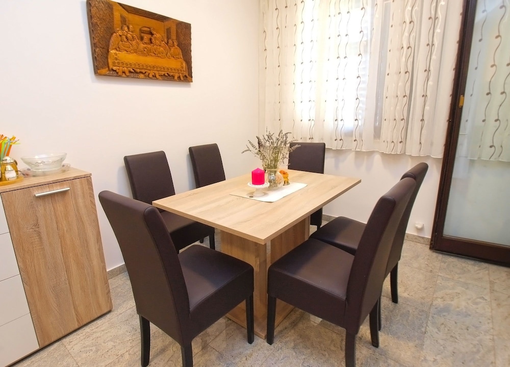 Lomakoti sijaitsee valtameren rannalla, ja Štinjanin ranta ja Pulan lauttasatama sijaitsevat 5 minuutin ajomatkan päässä. Tämä loma-asunto sijaitsee 3,5 km:n päässä kohteesta Istrian nykytaiteen museo ja 3,7 km:n päässä kohteesta Pyhän Marian katedraali. Tämä ilmastoitu loma-asunto tarjoaa käyttöösi keittiö, jossa on jääkaappi ja uuni. Huoneessa on parveke tai terassi. Ilmainen langaton internetyhteys pitää sinut yhteydessä, ja satelliittikanavat viihdyttävät yöpymisen aikana. Mukavuuksiin kuuluu oleskelualue, mikroaaltouuni ja siivouspalvelu kerran yöpymisen aikana. Etäisyydet pyöristetään lähimpään 0,1 mailiin ja kilometriin.