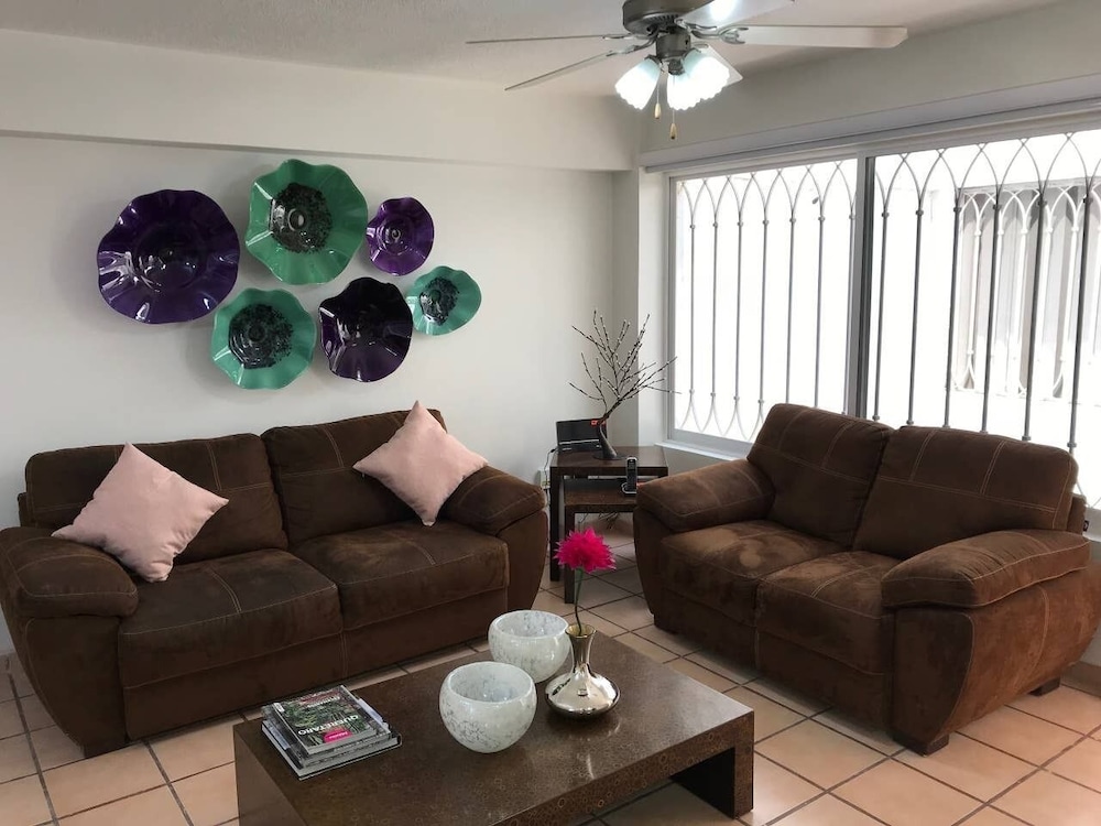 Santiago de Querétaron akvedukti ja Santa Rosa de Viterbon temppeli sijaitsevat 5 minuutin ajomatkan päässä majoituspaikasta. Tämä loma-asunto sijaitsee 1,4 km:n päässä kohteesta Santo Domingon temppeli ja 1,5 km:n päässä kohteesta Querétaron katedraali. Tämä loma-asunto tarjoaa käyttöösi keittiön. Kaapelikanavat viihdyttävät yöpymisen aikana. Mukavuuksiin kuuluu kuivausrumpu ja silitysrauta/-lauta. Etäisyydet pyöristetään lähimpään 0,1 mailiin ja kilometriin.