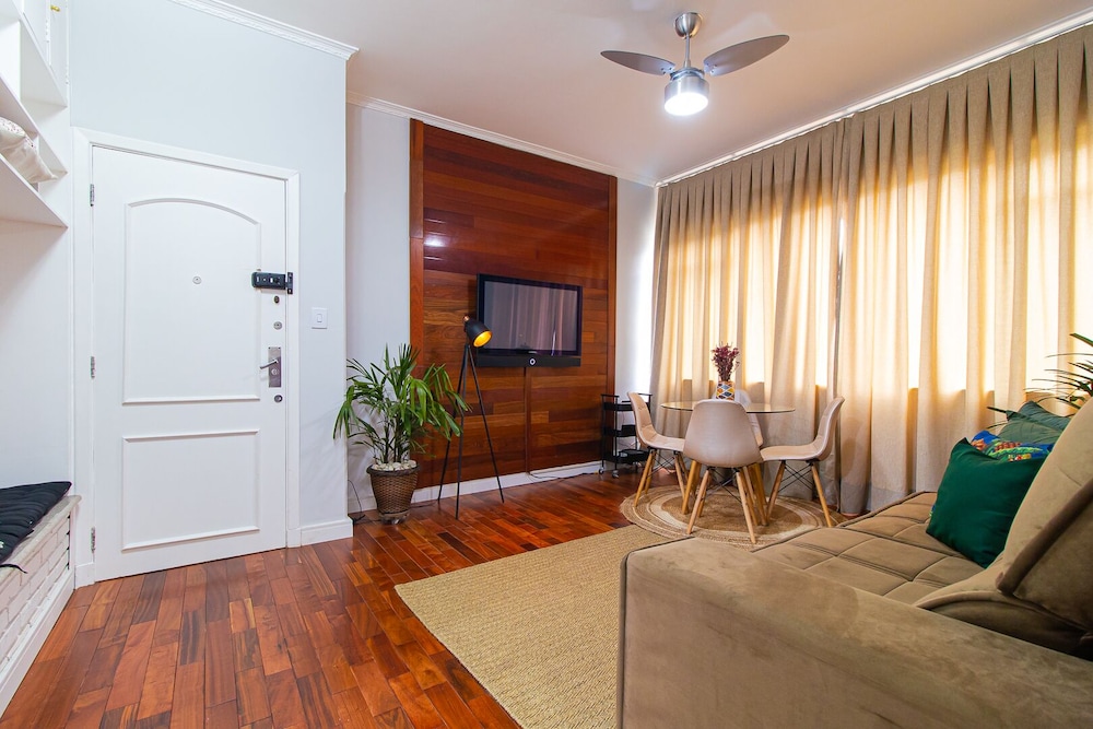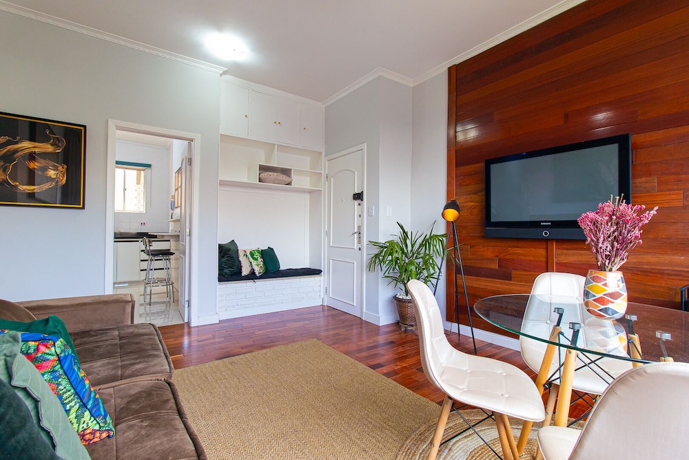 Avenida Paulista ja Rua Augusta sijaitsevat 15 minuutin kävelymatkan päässä. Tämä huoneisto sijaitsee 6,4 km:n päässä kohteesta Allianz Parque -stadion ja 3,3 km:n päässä kohteesta Rua 25 de Março. Tämä huoneisto tarjoaa käyttöösi keittiön. Ilmainen langaton internetyhteys pitää sinut yhteydessä. Etäisyydet pyöristetään lähimpään 0,1 mailiin ja kilometriin.