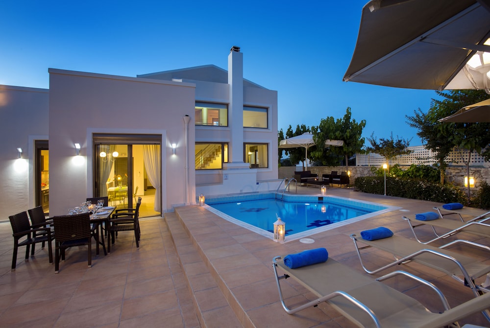 Museum of Ancient Eleutherna ja Moni Arkadin luostari sijaitsevat 10 minuutin ajomatkan päässä majoituspaikasta. Tämä huvila sijaitsee 10,1 km:n päässä kohteesta Rethimno Kart ja 15,5 km:n päässä kohteesta Melidónin luola. Tässä majoituspaikassa on 3 ilmastoitua huonetta, joissa on yksityinen uima-allas ja taulutelevisio. Jokaisessa huoneessa on kalustettu parveke tai terassi. Varusteluun kuuluu keittiö, jossa on jääkaappi, uuni ja liesi. Mukavuuksiin kuuluu DVD-soitin ja satelliittikanavat. Käytössäsi on myös ilmainen langaton internetyhteys. Huoneissa on oma kylpyhuone, ja sen varusteluun kuuluu poreamme ja hiustenkuivaaja. Etäisyydet pyöristetään lähimpään 0,1 mailiin ja kilometriin.