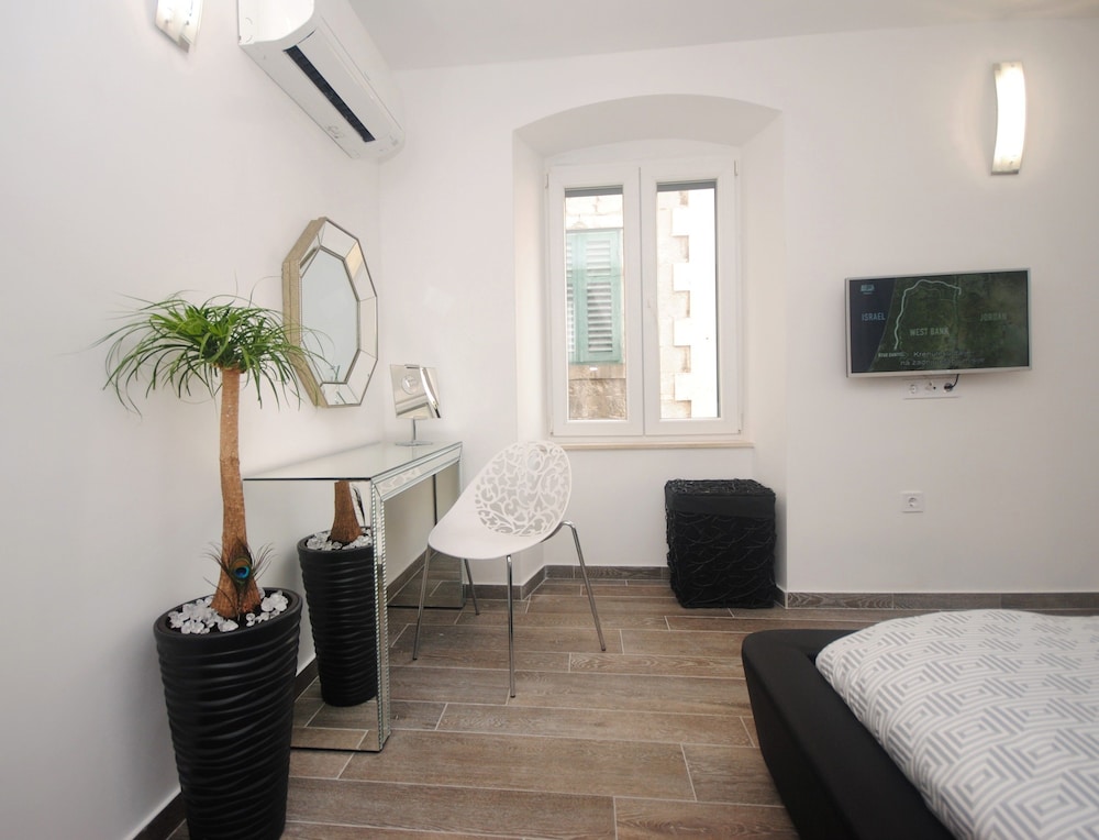 Riva-promenadi sijaitsee kivenheiton päässä ja Diokletianuksen palatsi puolestaan 7 minuutin kävelymatkan päässä. Tämä huoneisto sijaitsee 1,2 km:n päässä kohteesta Splitin satama ja 0,9 km:n päässä kohteesta Splitin satama. Tässä majoituspaikassa on 2 viihtyisää huonetta. Huoneiden varusteluun kuuluu muun muassa keittiö, jossa on täysikokoinen jääkaappipakastin ja uuni. Mukavuuksiin kuuluu älytelevisio ja digitaalikanavat. Käytössäsi on myös ilmainen langaton internetyhteys. Huone siivotaan päivittäin. Huoneissa on mikroaaltouuni ja kahvin-/vedenkeitin. Etäisyydet pyöristetään lähimpään 0,1 mailiin ja kilometriin.