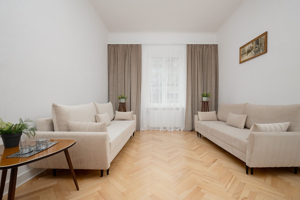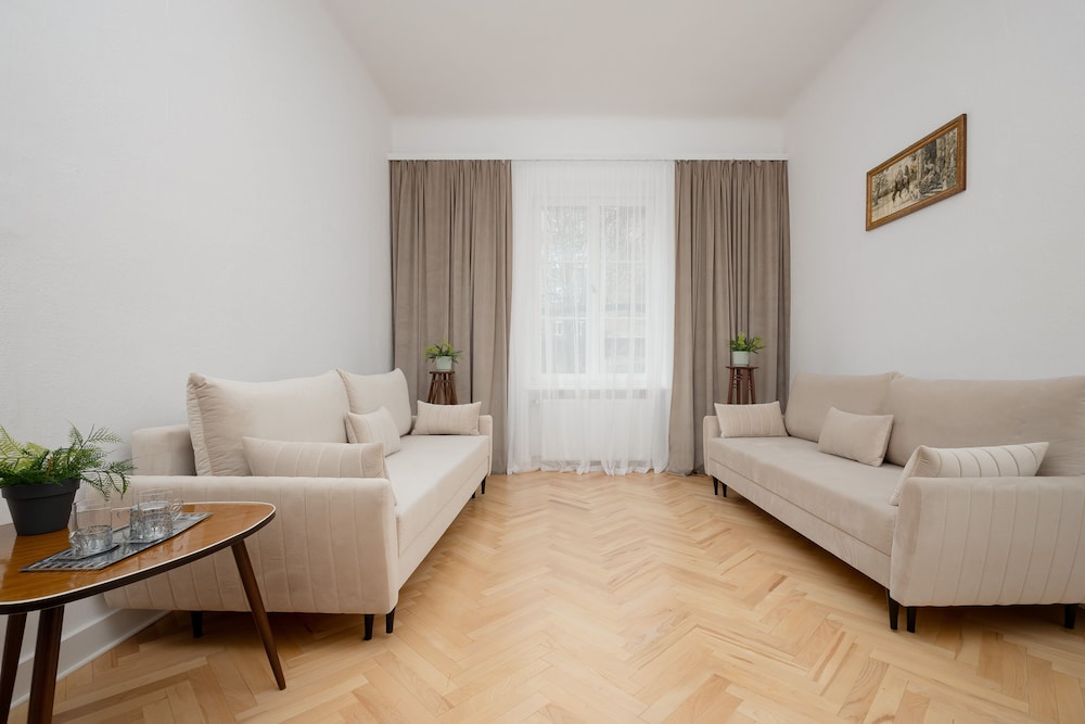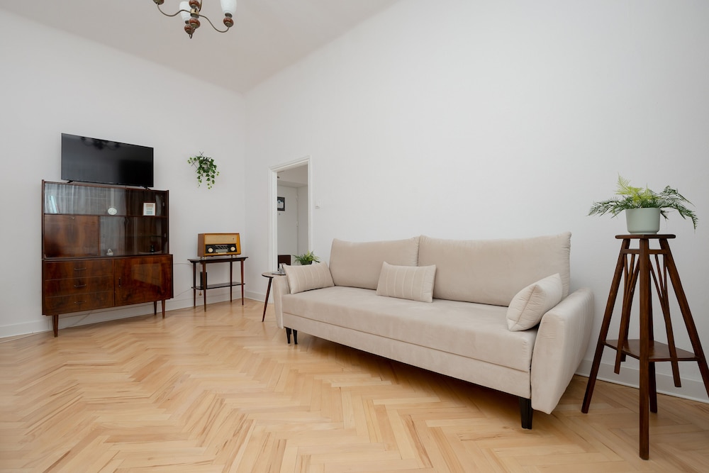 Kulttuurin ja tieteen palatsi sijaitsee 2 minuutin ajomatkan päässä ja Kansallisstadion 6 minuutin ajomatkan päässä. Tämä huoneisto sijaitsee 6 km:n päässä kohteesta Vanhankaupungin aukio ja 0,2 km:n päässä kohteesta Varsovan teknillinen yliopisto. Tämä huoneisto tarjoaa käyttöösi keittiön. Etäisyydet pyöristetään lähimpään 0,1 mailiin ja kilometriin.