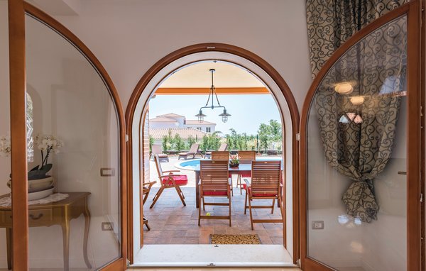 This beautiful holiday home with pool is located near the coast, in the small village of Vabriga, which is situated between the well-known tourist centres of Pore and Novigrad, to which you can take day trips from here. Equipped with excellent furniture and fabulously decorated, the house is an excellent choice for a relaxing holiday. On the ground floor you will find the living room, kitchen and dining area as well as a guest toilet. On the first floor there are three bedrooms, each with its own bathroom. In addition to the wonderful living atmosphere, the proximity to the nearest beach, which can be reached in about 10 minutes on foot, is another advantage.