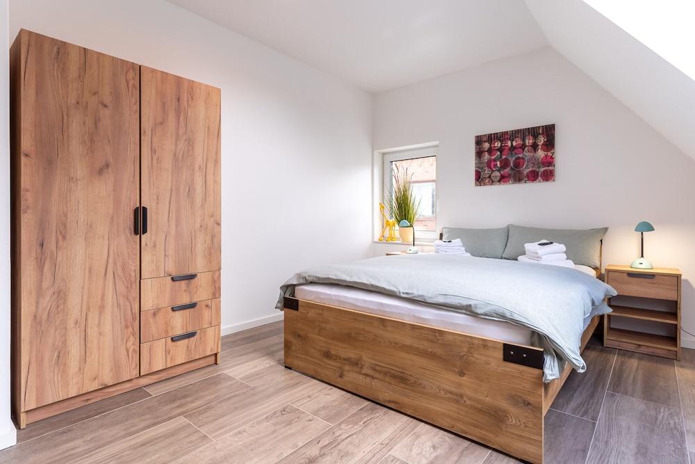 Lomakoti sijaitsee lähellä rantaa, ja Landschaft Eiderstedtin museo sijaitsee 7 minuutin ajomatkan päässä majoituspaikasta. Tämä loma-asunto sijaitsee 5,2 km:n päässä kohteesta Westküstenpark & Robbariumin eläin- ja luonnonsuojelupuisto ja 7,6 km:n päässä kohteesta Auslaufgebiet im Ort. Tee olosi kotoisaksi yksilöllisesti kalustetussa loma-asunnossasi. Etäisyydet pyöristetään lähimpään 0,1 mailiin ja kilometriin.