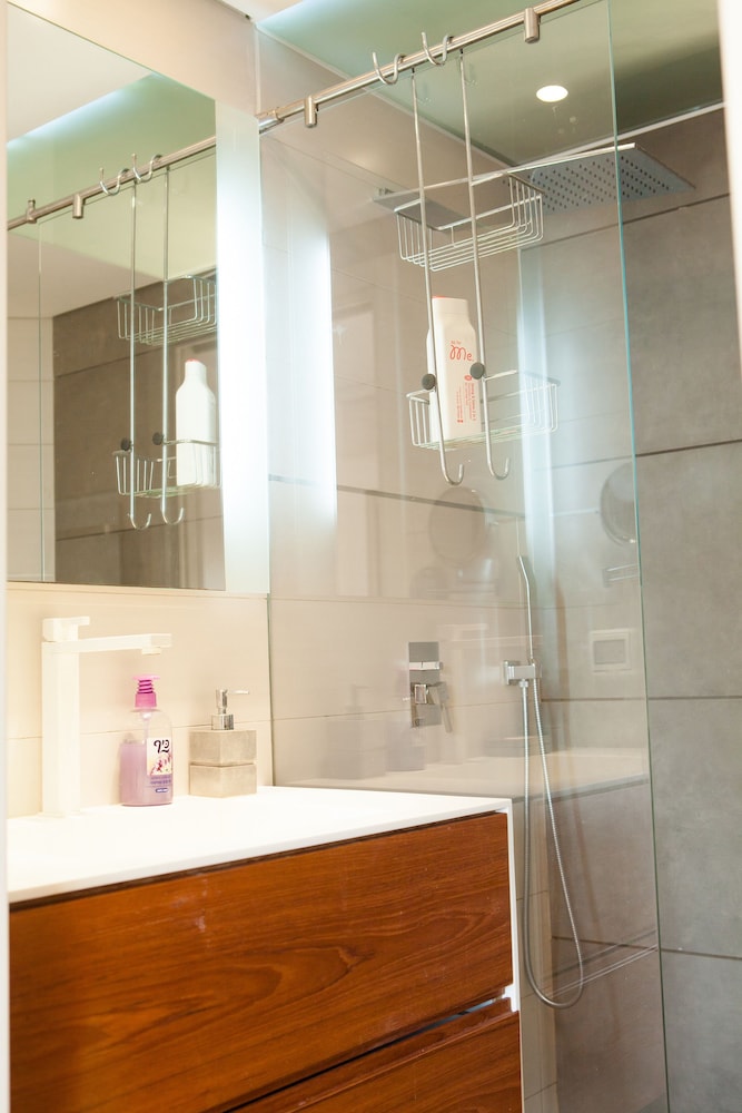 Ben Yehudan katu (ostospaikka) sijaitsee kivenheiton päässä ja Ben Gurion -museo puolestaan 3 minuutin kävelymatkan päässä majoituspaikasta. Tämä huoneisto sijaitsee 0,7 km:n päässä kohteesta Hilton-ranta ja 0,7 km:n päässä kohteesta Gordonin uima-allas. Tämä ilmastoitu huoneisto tarjoaa käyttöösi yksityisen porealtaan ja LED-television. Huoneessa on parveke. Keittiössä on täysikokoinen jääkaappipakastin, uuni ja liesi. Ilmainen langaton internetyhteys pitää sinut yhteydessä, ja satelliittikanavat viihdyttävät yöpymisen aikana. Etäisyydet pyöristetään lähimpään 0,1 mailiin ja kilometriin.