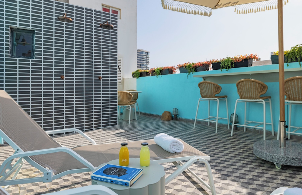 Scarlet Hotel sijaitsee keskustassa, joten Ben Yehudan katu (ostospaikka) löytyy kivenheiton päästä ja Frishmanin ranta puolestaan vain 5 minuutin kävelymatkan päästä. Tämä hotelli sijaitsee 0,6 km:n päässä kohteesta Ben Gurion -museo ja 0,7 km:n päässä kohteesta Dizengoff-aukio. Kaikissa 35 huoneessa on ilmastointi, jääkaappi sekä taulutelevisio. Käytössäsi on kaapelikanavat ja ilmainen internetyhteys (langaton ja kiinteä). Huoneissa on oma kylpyhuone, ja sen varusteluun kuuluu ilmaiset hygieniatuotteet ja hiustenkuivaaja. Varusteluun kuuluu puhelin, tallelokero ja työpöytä. Etäisyydet pyöristetään lähimpään 0,1 mailiin ja kilometriin.