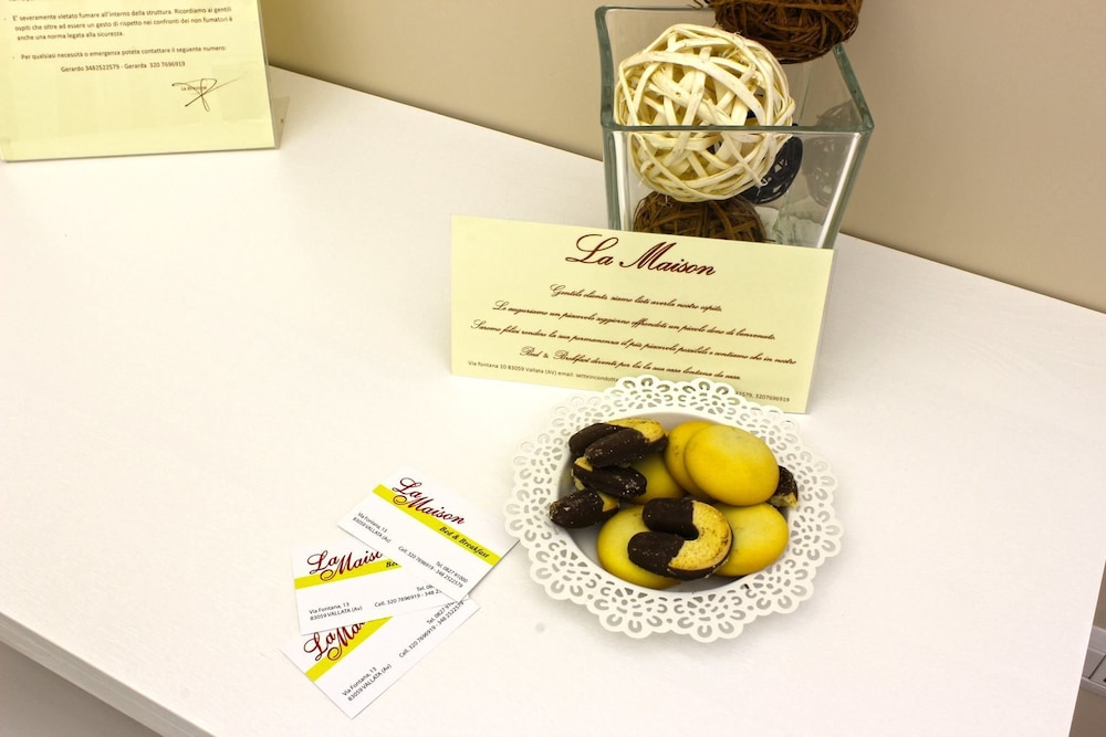 La Maison sijaitsee 22,1 km kohteesta Sant'Agata di Puglian linna ja 22,2 km kohteesta Chiesa San Andrean kirkko. Tämä aamiaismajoitus sijaitsee 23,5 km:n päässä kohteesta San Guglielmo al Goleton luostari ja 27,7 km:n päässä kohteesta Civi Amato Statue. Kaikissa 4 huoneessa on ilmastointi, minibaari sekä taulutelevisio. Jokaisessa huoneessa on parveke. Ilmainen langaton internetyhteys pitää sinut yhteydessä verkkoon. Kylpyhuoneesta löytyy suihku, ilmaiset hygieniatuotteet ja bidee. Etäisyydet pyöristetään lähimpään 0,1 mailiin ja kilometriin.