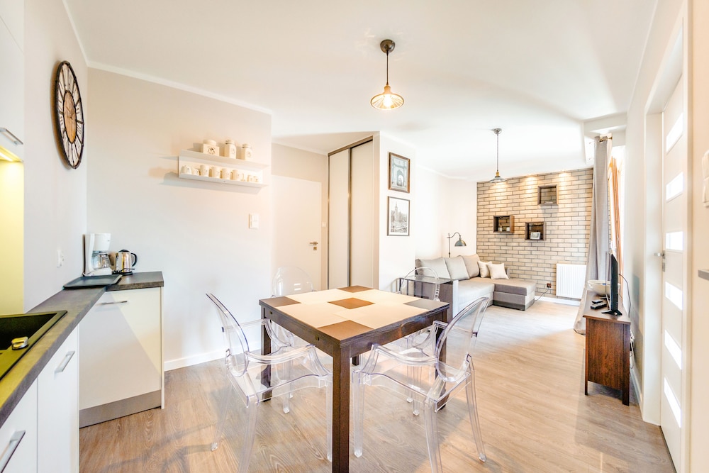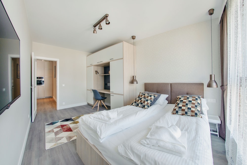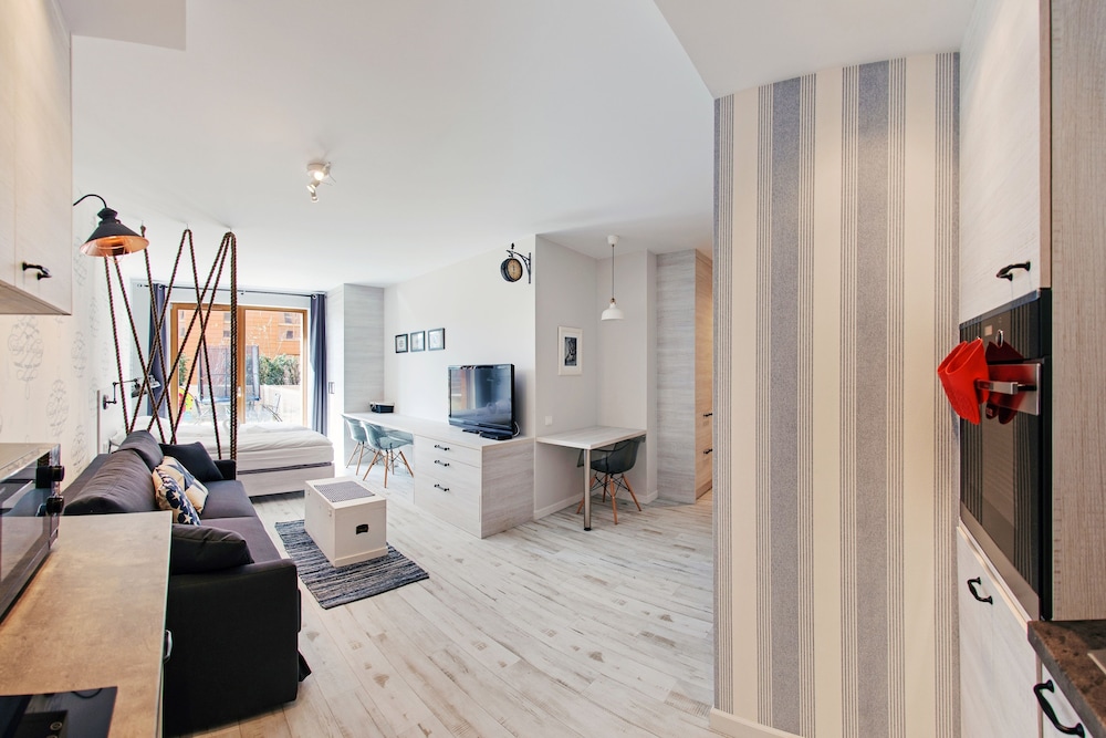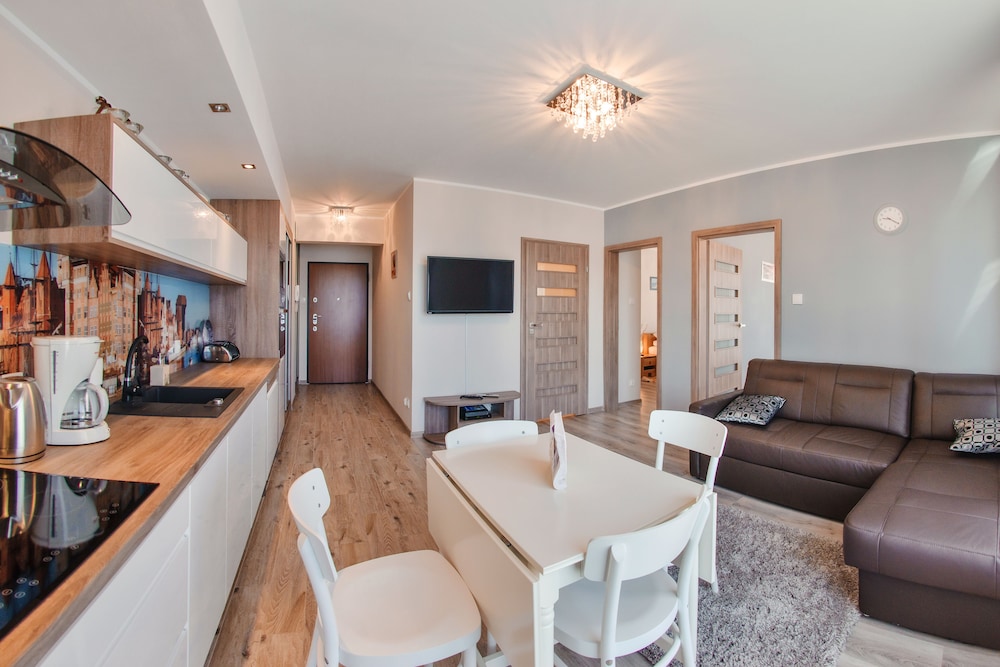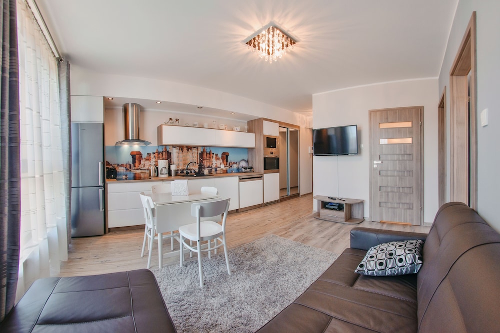 Nykytaiteenmuseo Łaźnia ja Długie Pobrzeżen rantakatu sijaitsevat 10 minuutin kävelymatkan päässä majoituspaikasta. Tämä huoneisto sijaitsee 0,6 km:n päässä kohteesta Vihreä portti ja 0,7 km:n päässä kohteesta Dlugi Targ. Tässä majoituspaikassa on 60 yksilöllisesti sisustettua huonetta. Huoneiden varusteluun kuuluu muun muassa keittonurkkaus, jossa on jääkaappi ja liesi. Mukavuuksiin kuuluu ilmainen langaton internetyhteys ja 30-tuumainen taulutelevisio. Huoneissa on vedenkeitin ja silitysrauta/-lauta. Etäisyydet pyöristetään lähimpään 0,1 mailiin ja kilometriin.