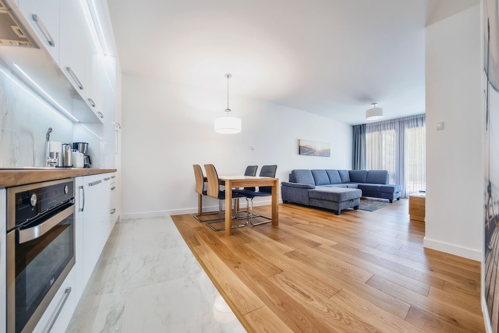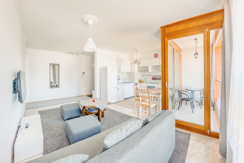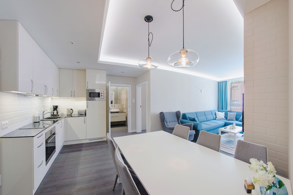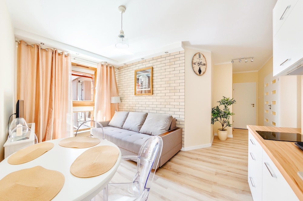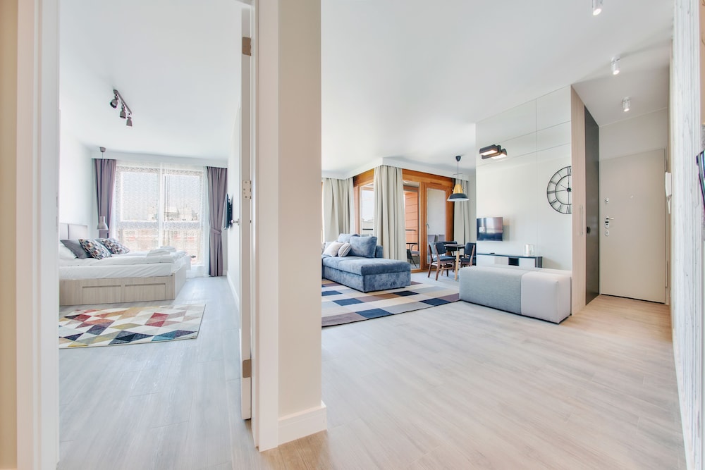 Nykytaiteenmuseo Łaźnia ja Długie Pobrzeżen rantakatu sijaitsevat 10 minuutin kävelymatkan päässä majoituspaikasta. Tämä huoneisto sijaitsee 0,6 km:n päässä kohteesta Vihreä portti ja 0,7 km:n päässä kohteesta Dlugi Targ. Tässä majoituspaikassa on 60 yksilöllisesti sisustettua huonetta. Huoneiden varusteluun kuuluu muun muassa keittonurkkaus, jossa on jääkaappi ja liesi. Mukavuuksiin kuuluu ilmainen langaton internetyhteys ja 30-tuumainen taulutelevisio. Huoneissa on vedenkeitin ja silitysrauta/-lauta. Etäisyydet pyöristetään lähimpään 0,1 mailiin ja kilometriin.
