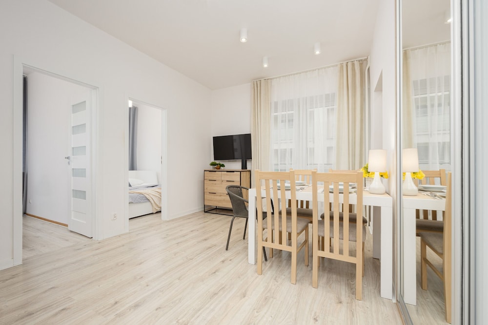 Kulttuurin ja tieteen palatsi sijaitsee 2 minuutin ajomatkan päässä ja Kansallisstadion 7 minuutin ajomatkan päässä. Tämä huoneisto sijaitsee 5,1 km:n päässä kohteesta Vanhankaupungin aukio ja 0,6 km:n päässä kohteesta Warta Tower. Tämä huoneisto tarjoaa käyttöösi keittiön. Etäisyydet pyöristetään lähimpään 0,1 mailiin ja kilometriin.